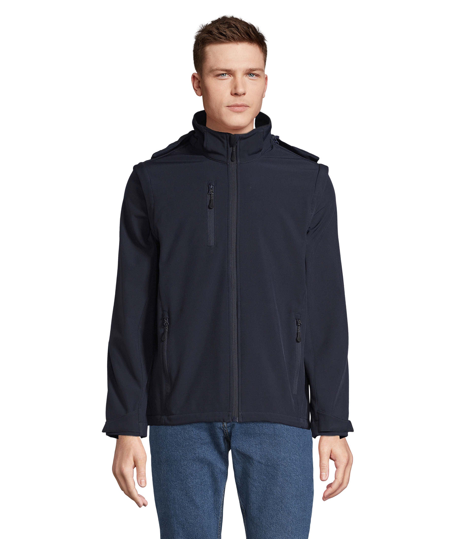 Men's 3-layer softshell zip jacket.