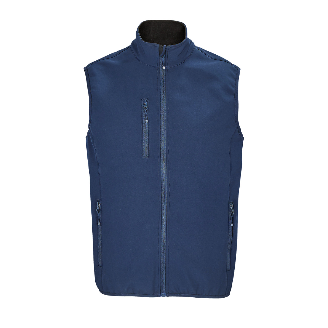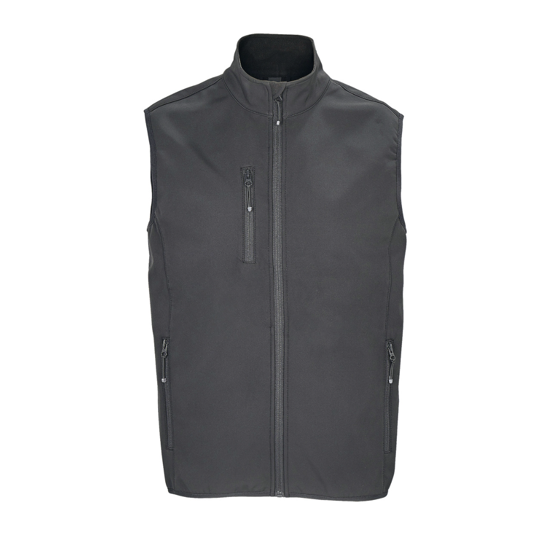 Men's 3-layer softshell zip vest.